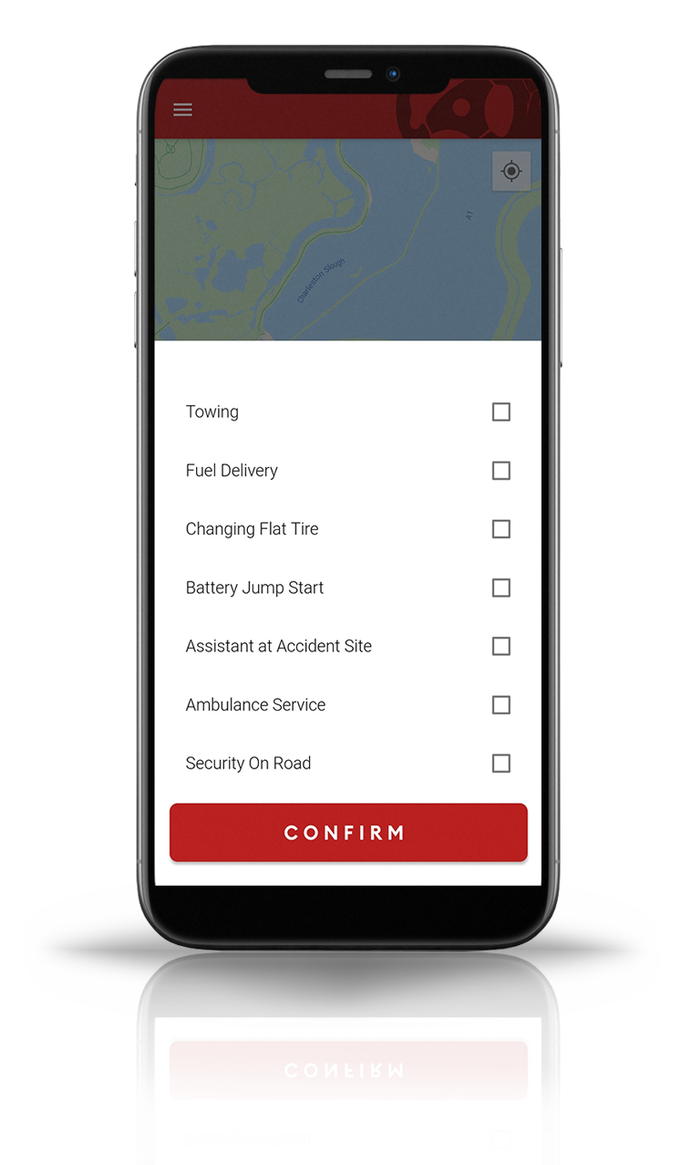 You can request road assistance by logging in to the App, select the vehicle then select request assistance on the home screen, select the service(s) you require by ticking the box then click confirm.